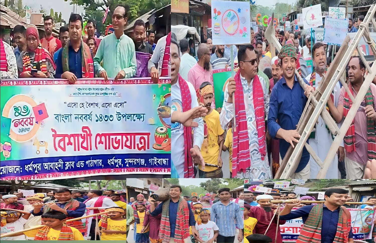 গাইবান্ধার সুন্দরগঞ্জ উপজেলার ধর্মপুরে উৎসবমুখর পরিবেশে বাংলা নববর্ষ ১৪৩৩ উদযাপন করা হয়েছে। এ উপলক্ষে বর্ণাঢ্য শোভাযাত্রা ও বাংলার ঐতিহ্যবাহী পান্তা-ইলিশের আয়োজন করা হয়।