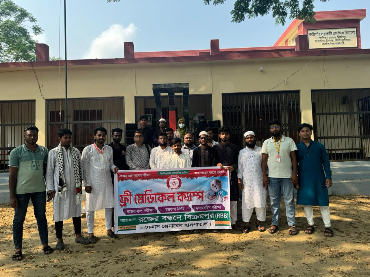 মানবতার সেবায় নিবেদিত স্বেচ্ছাসেবী সংগঠন রক্তের বন্ধনে বিক্রমপুর (RBB)-এর উদ্যোগে মুন্সিগঞ্জের শ্রীনগরের কল্লিগাও প্রাইমারী স্কুল প্রাঙ্গণে একটি দিনব্যাপী ফ্রি মেডিকেল ক্যাম্প অনুষ্ঠিত হয়েছে।